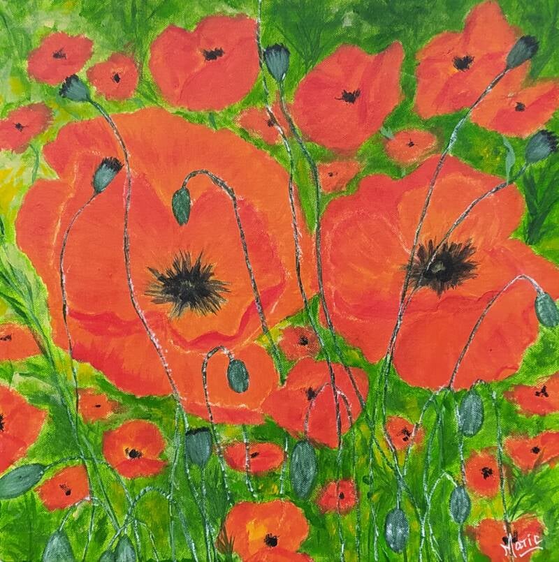 MON COEUR DE PAVOT AIME LES PETITS CARREAUX ! / ACRYLIQUE ET COLLAGE / 50 CM X 50 CM