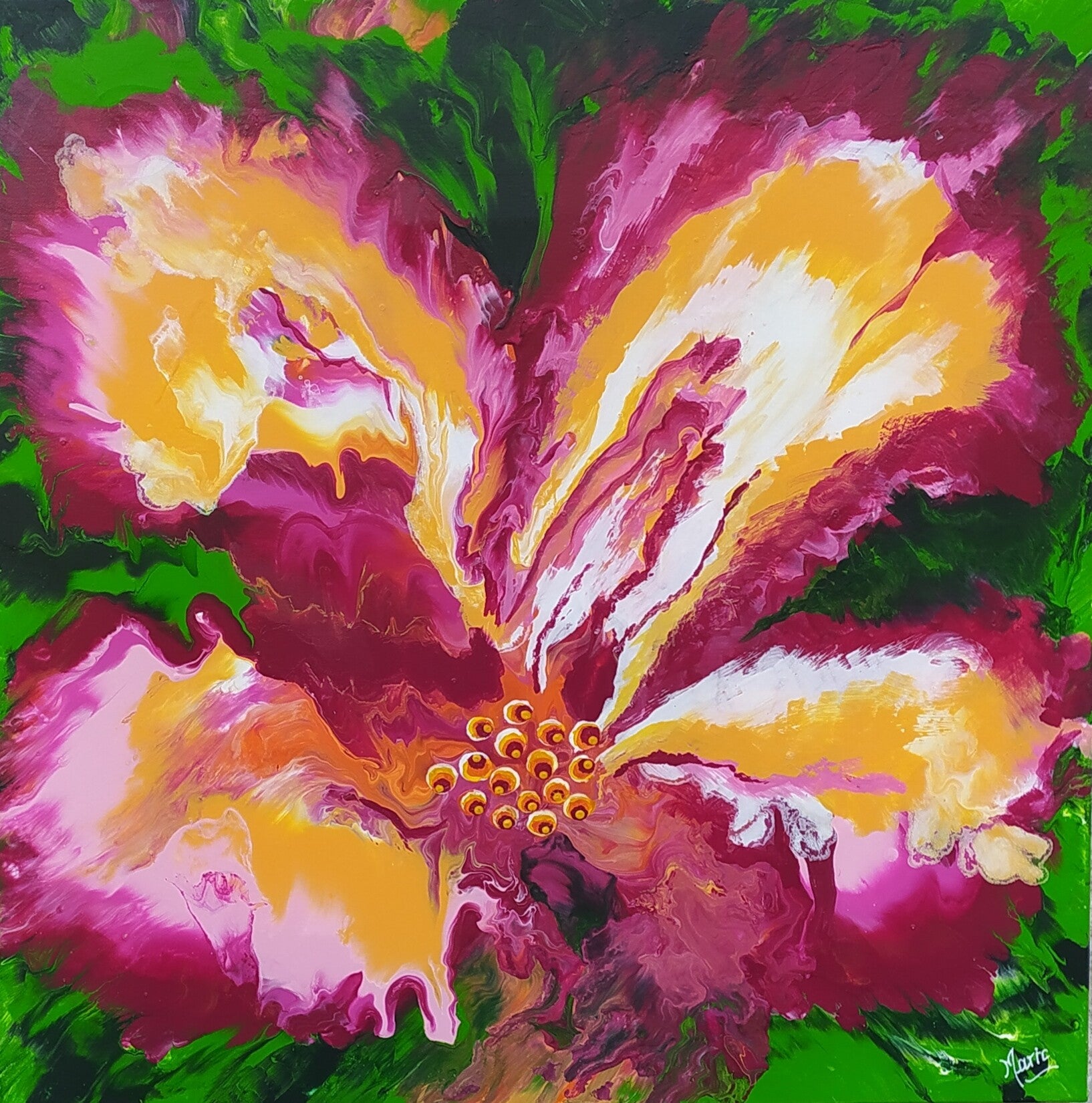 UNE JOLIE FLEUR DANS UNE PEAU D' / ACRYLIQUE ET COLLAGE / 40 CM X 40 CM