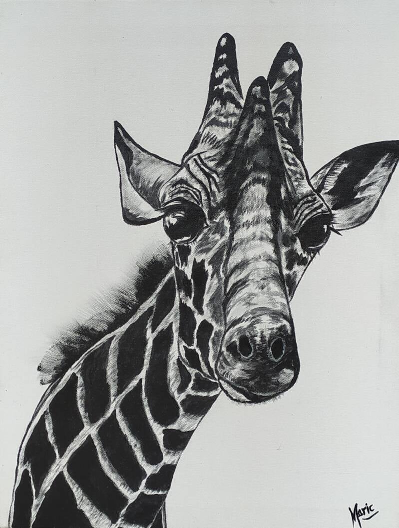 HIBISCUS ET GIRAFE FONT BON MENAGE / ACRYLIQUE ET COLLAGE / 40 CM X 40 CM